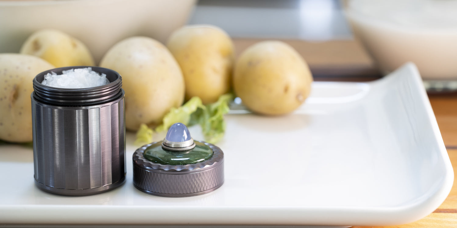 Each vessel in our Andromeda Series is individually designed and intricately carved with patterns long reserved for fine watches and Fabergé eggs. Every cap is crowned with an original and integral ornament of the Jeweler's Art, ranging from the whimsical to exquisite.