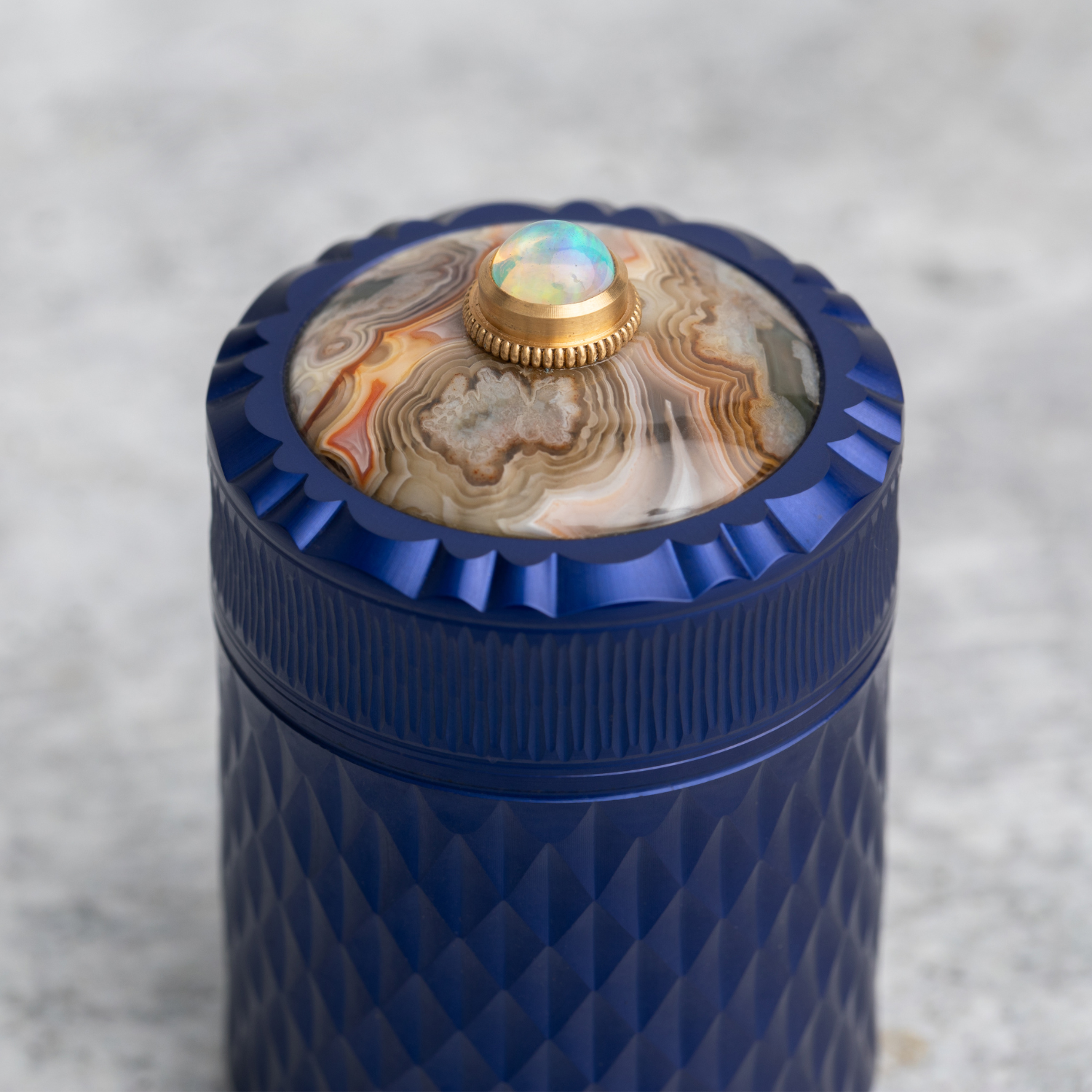 Our Astral Vessels are made from modern aircraft-grade aluminum that we carve, engrave and ornament using a variety of metalworking techniques, from ancient to modern. Our designs will sparkle like new for years thanks to the anodizing that illuminates, colors and hardens the surfaces, shielding the vessel from corrosion, abrasion and light impact.