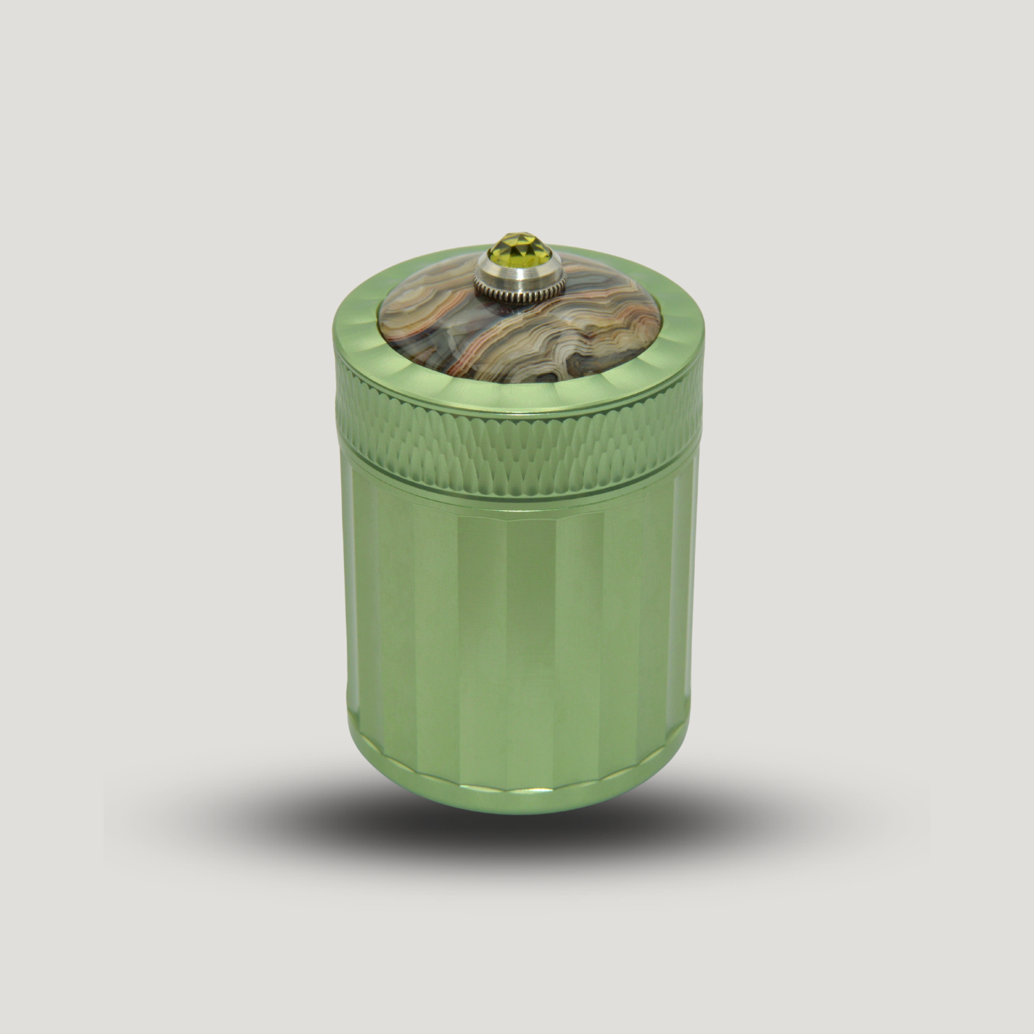 This vessel features a Rose Engine carved cap that compliments the classical 24-flute pattern carved onto the body with our ornamental lathe.