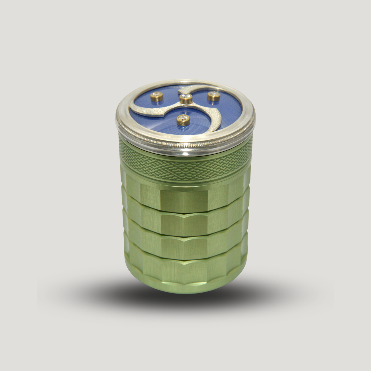 The sidewall of the vessel cap was also engraved with a matching pattern on our 1910 Rose Engine. The luscious spring green body was carved with a pattern of 18 flutes on our 1875 ornamental lathe.