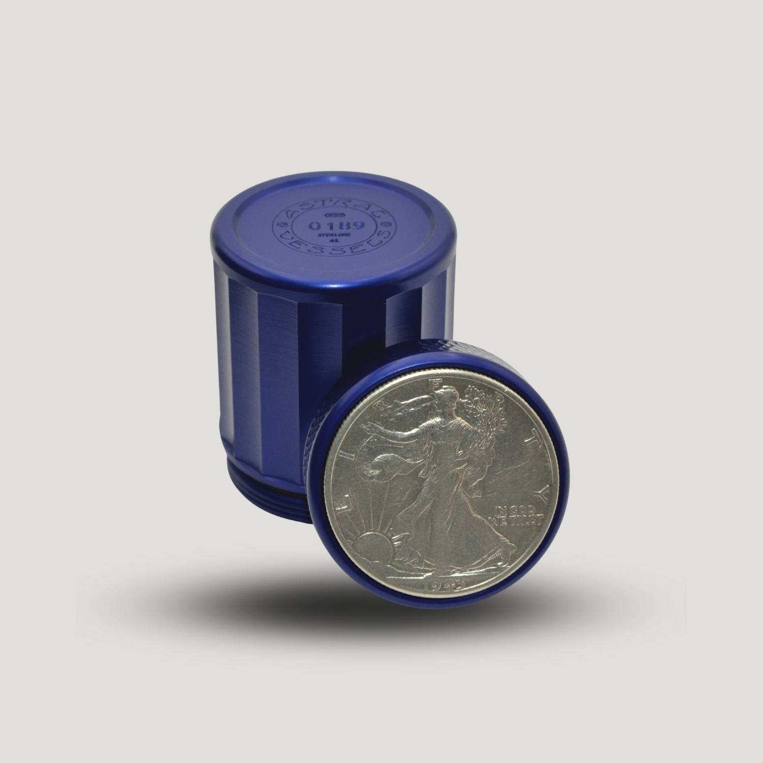 The inset US coin is a genuine, solid silver 1943 Walking Liberty Half Dollar.